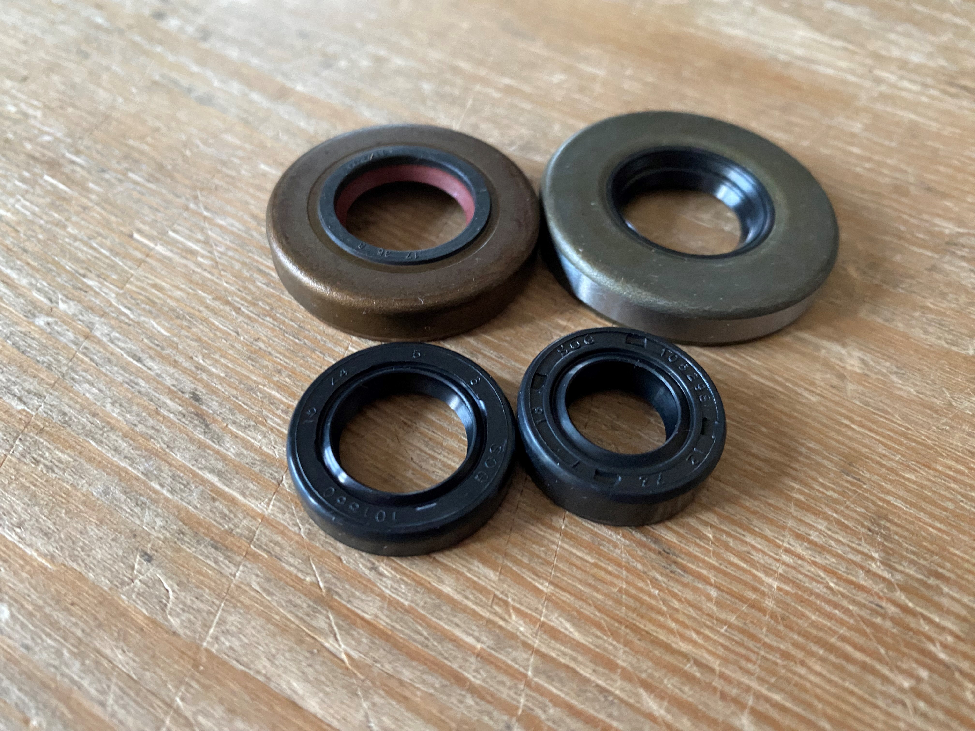 Kit complet joints spi composé de 2 joints de vilebrequin à cages métalliques, simple lèvre, en 17x35x8 (NBR Viton) + 17x40x7 NBR